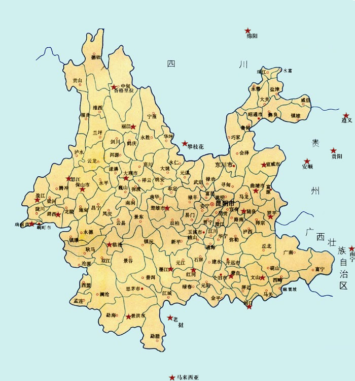 省內(nèi)區(qū)域:曲靖、陸良、大理、宣威、楚雄、墨江、盈江、紅河、怒江、保山、文山、臨滄、羅平、麗江、景洪、潞西、思茅、蒙自、河口、瑞麗、香格里拉